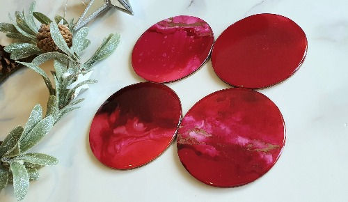Set of 4 Deep Pink & Gold Round Coasters (Ex Display)